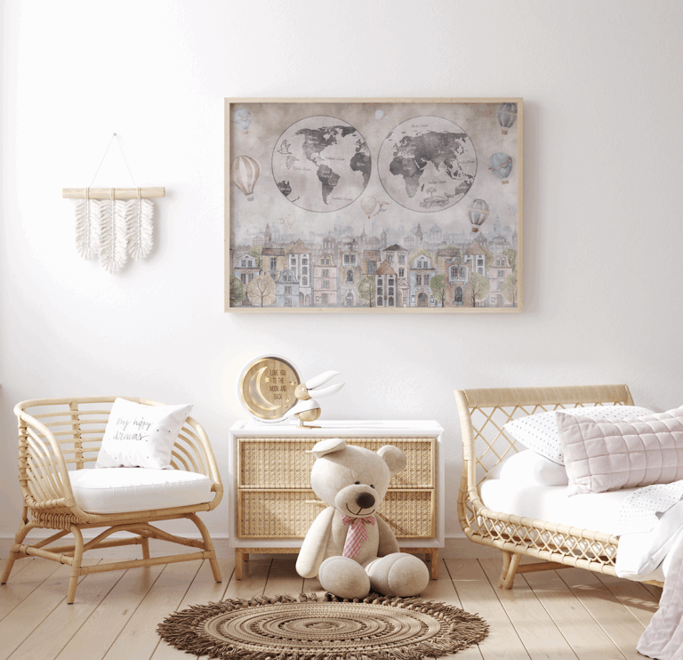 Plakaty z mapami to idealna propozycja dla miłośników podróży, geografii i stylowych, a jednocześnie edukacyjnych dekoracji. Świetnie sprawdzą się jako akcent z charakterem w domowych i biurowych przestrzeniach.