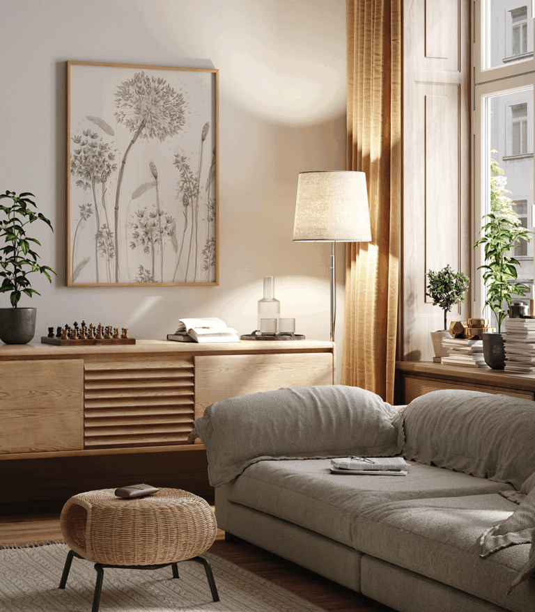 Plakaty roślinne sprawdzą się w salonie, sypialni, kuchni, a nawet w łazience. Świetnie komponują się z wnętrzami skandynawskimi, boho, rustykalnymi oraz nowoczesnymi, dodając im lekkości i życia.