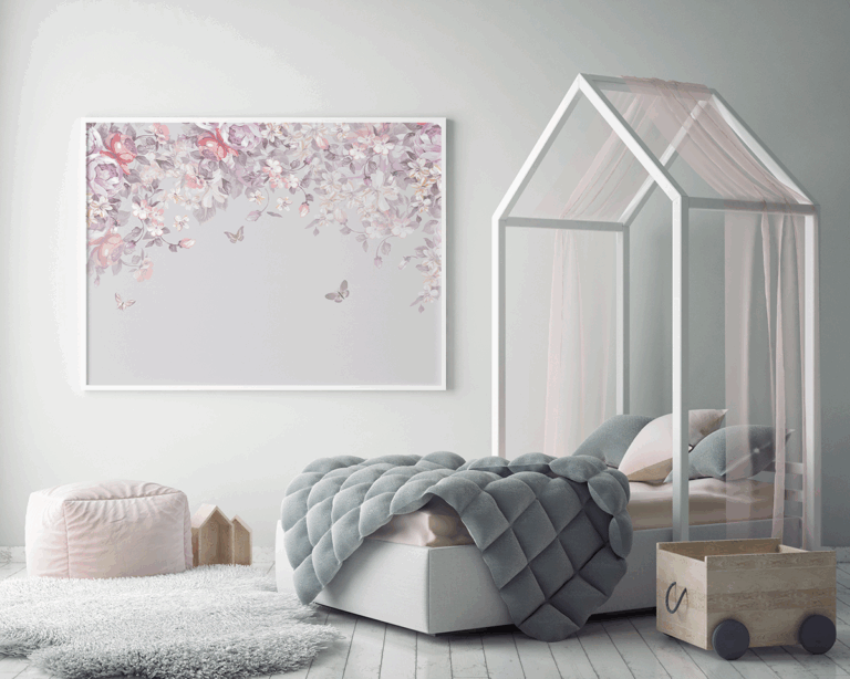 Fototapeta Kwietna Harmonia, winyl na fizelinie, linen – ogólnie piękna, jednak kolory różowe są bardziej intensywne niż na zdjęciach. Na stronie kolory są bardziej przytłumione, na żywo różowy ma bardziej podkręcony kolor.