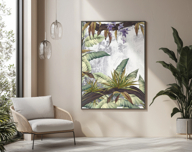 W naszej kolekcji znajdziesz zarówno realistyczne ilustracje liści, kwiatów, palm i kaktusów, jak i artystyczne grafiki inspirowane światem botaniki. To idealna dekoracja dla miłośników przyrody i delikatnych akcentów.