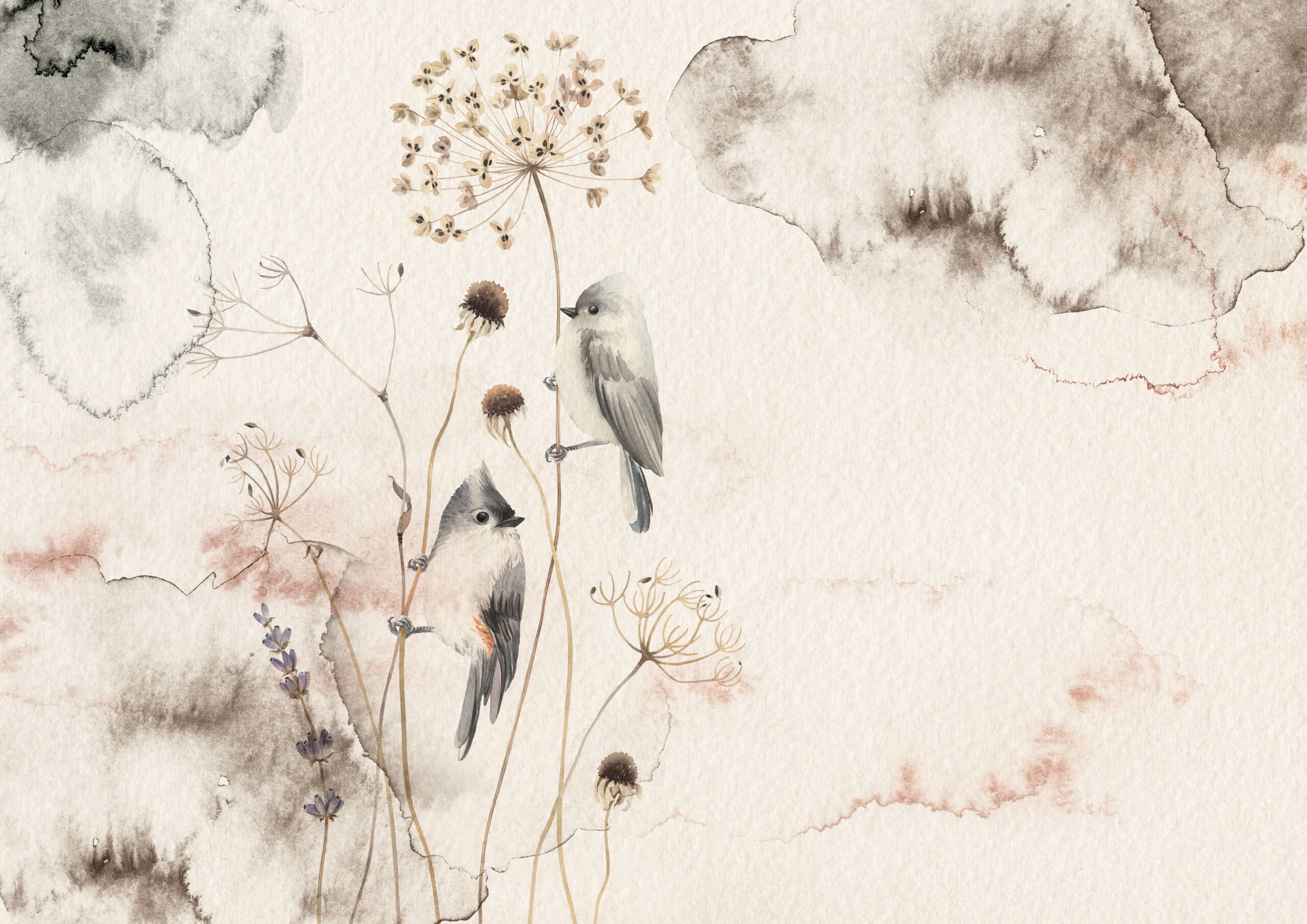 Wprowadź do swojego domu wyjątkowy klimat dzięki fototapecie „Akwarelowa ptasia delikatność”. Ten pełen wdzięku, akwarelowy motyw przedstawia dwa drobne ptaki siedzące na suchych roślinach, otulone miękkimi, pastelowymi plamami farby. Subtelne, naturalne barwy oraz delikatna struktura akwareli tworzą spokojną, lekką i poetycką kompozycję, idealną dla wnętrz, które mają emanować ciepłem i wyciszeniem.