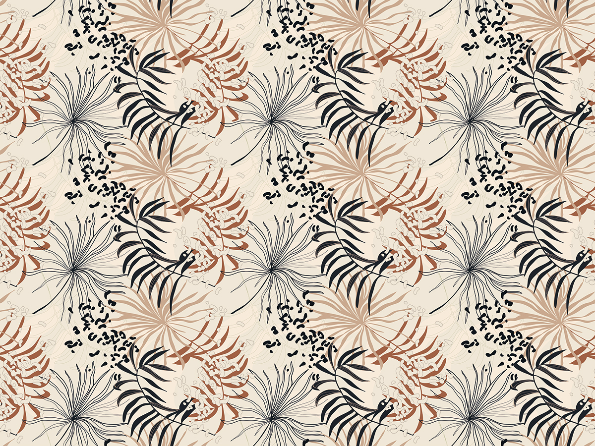 Wprowadź do wnętrza wyrafinowany, naturalny akcent dzięki fototapecie „Botaniczny ornament”. Stylizowany wzór przedstawiający różnorodne liście palmowe i egzotyczne rośliny tworzy dynamiczną, a jednocześnie harmonijną kompozycję. Subtelne połączenie kremowego tła z odcieniami beżu, karmelu i głębokiej czerni nadaje całości nowoczesny, elegancki charakter.