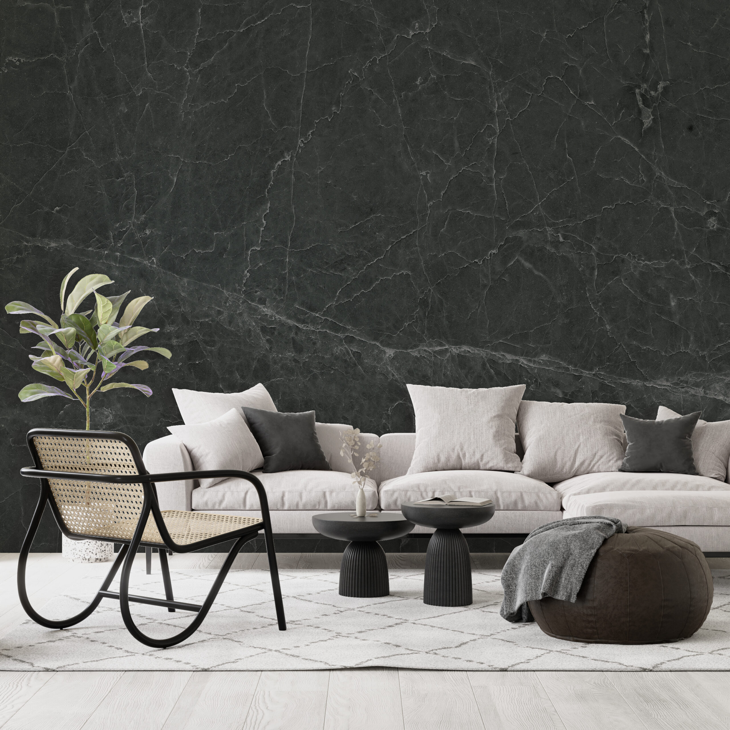 Fototapeta oddaje wygląd ciemnej, kamiennej powierzchni – z wyraźną strukturą, cieniowaniem i detalami, które nadają ścianie trójwymiarowy efekt. Dzięki temu wnętrze zyskuje: