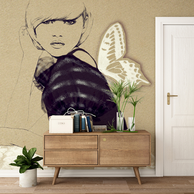 Odkryj artystyczną fototapetę z dziewczyną i motylem – wyjątkową dekorację ścienną, która doda Twojemu wnętrzu charakteru i stylu. Ta ilustracyjna grafika w subtelnej kolorystyce to idealna propozycja do nowoczesnych, eleganckich przestrzeni, takich jak salon, sypialnia, pokój młodzieżowy czy pracownia kreatywna.