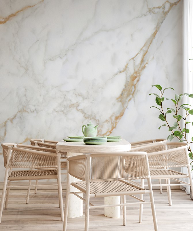 to fototapeta dla tych, którzy cenią sobie minimalistyczną elegancję i trwałość materiałów. Marmurowy motyw o subtelnych żyłkach wprowadza luksusową estetykę do wnętrz, dodając przestrzeni klasy i harmonii.