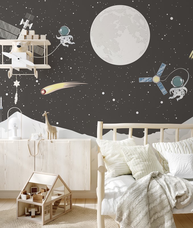 Kosmiczny motyw to doskonały wybór do pokoju chłopca i dziewczynki — motywy gwiezdne, planety i rozgwieżdżone niebo tworzą inspirującą, pełną energii i radości przestrzeń, która motywuje dziecko do marzeń o podróżach międzyplanetarnych.
