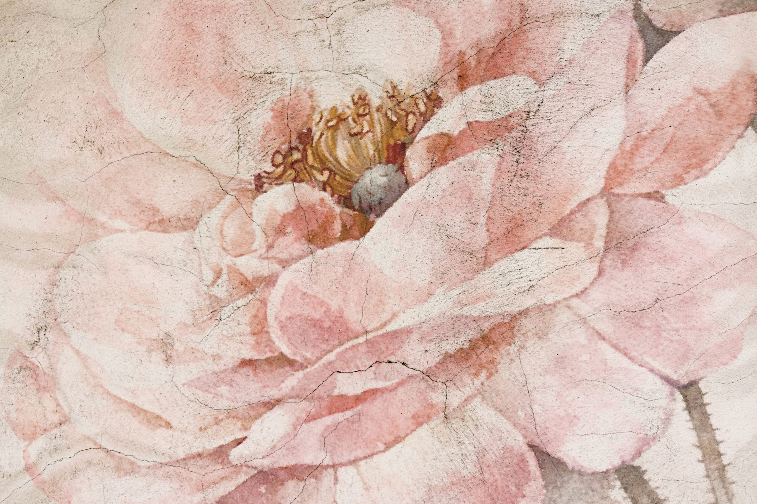 Fototapeta Kwiat w Pęknięciach Czasu to wyjątkowa dekoracja ścienna, która przyciąga uwagę i buduje nastrój. To obraz pełen subtelności, a jednocześnie wyrazistej formy. Przedstawia wnętrze kwiatu w pastelowych, ciepłych barwach, dlatego idealnie wpisuje się w nowoczesne aranżacje. Co więcej, delikatne przejścia kolorów tworzą harmonijną całość, a przy tym wprowadzają spokój i lekkość.