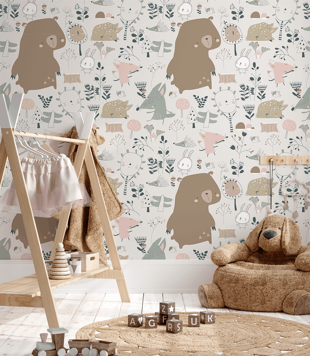 Fototapeta „Leśna Kraina Snów” – uroczy świat pełen przyjaznych zwierzątek i magicznej natury, który rozbudza dziecięcą wyobraźnię i tworzy ciepłą, bezpieczną przestrzeń.