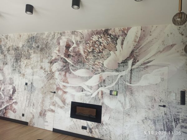 Kwiatowy wzór z pięknym nadrukiem bardzo upiększył mój salon! Bardzo łatwy montaż i świetna jakość materiału!