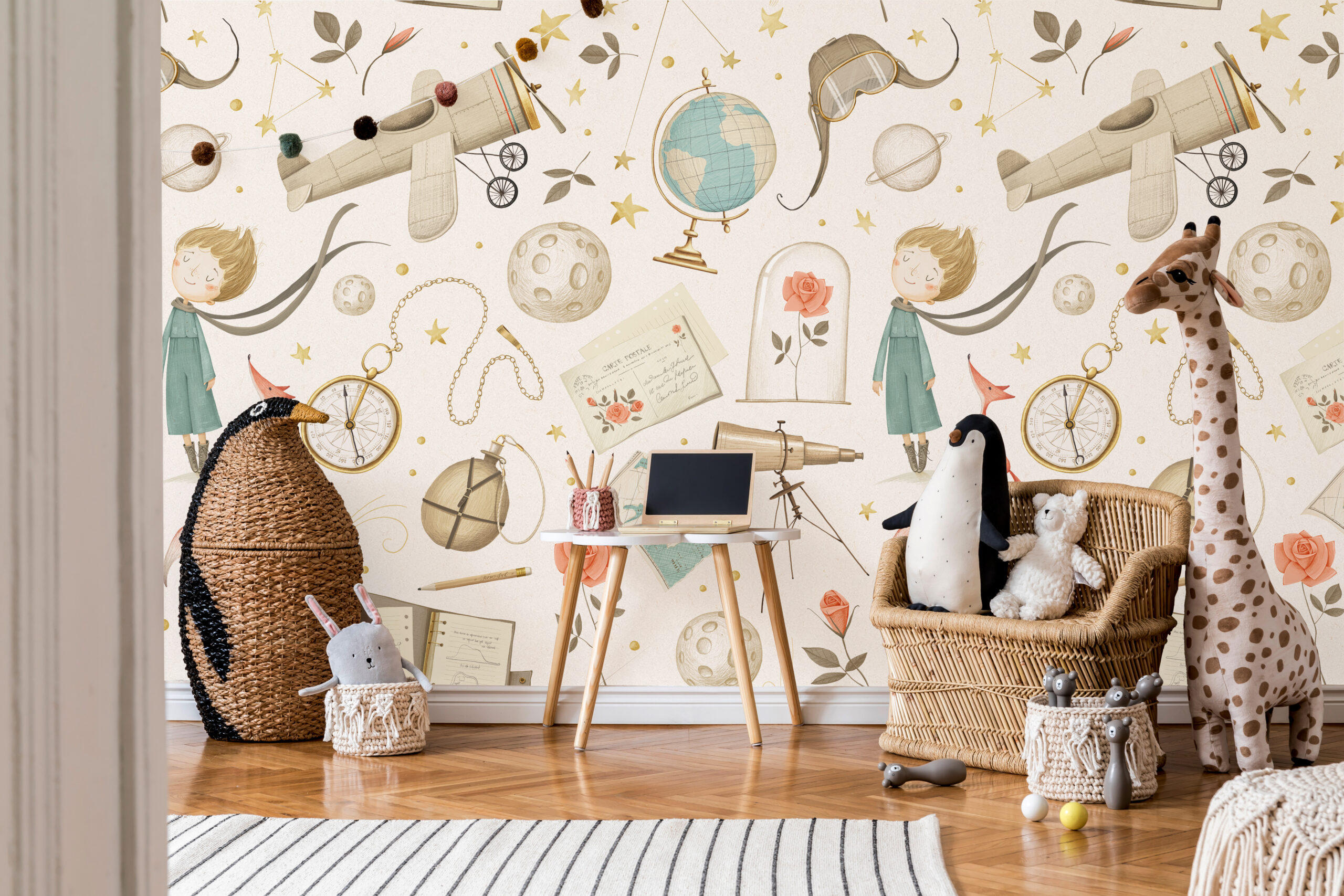 Stwórz magiczną przestrzeń w pokoju dziecka dzięki fototapecie „Mały Książę i Róża”. Ten wyjątkowy motyw inspirowany historią z książki Mały Książę autorstwa Antoine de Saint-Exupéry przedstawia jedną z najważniejszych relacji – między Małym Księciem a jego ukochaną różą.