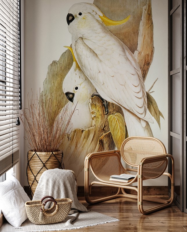to fototapeta, która wprowadza do wnętrza egzotyczny klimat i subtelną elegancję. Motyw dwóch papużek nierozłączek doskonale komponuje się w przestrzeniach, które cenią sobie harmonię i naturalne akcenty.