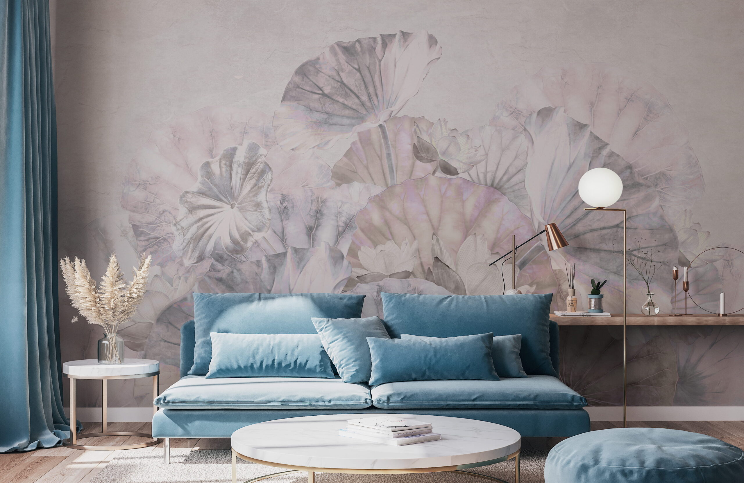 Fototapeta stanowi wyrafinowany akcent dekoracyjny, który wprowadza do przestrzeni harmonię, jasność i wizualną lekkość, tworząc atmosferę sprzyjającą wyciszeniu i relaksowi.