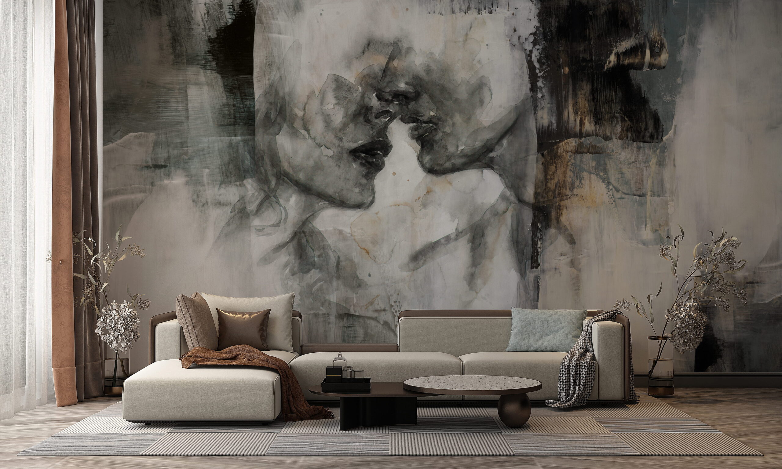 Nowoczesna abstrakcja połączona z portretowym motywem nadaje przestrzeni głębi i emocji, doskonale wpisując się w aranżacje minimalistyczne, nowoczesne, artystyczne oraz loftowe. Neutralne kolory sprawiają, że fototapeta pięknie uzupełnia wnętrze, nie dominując go, lecz subtelnie podkreślając jego charakter.