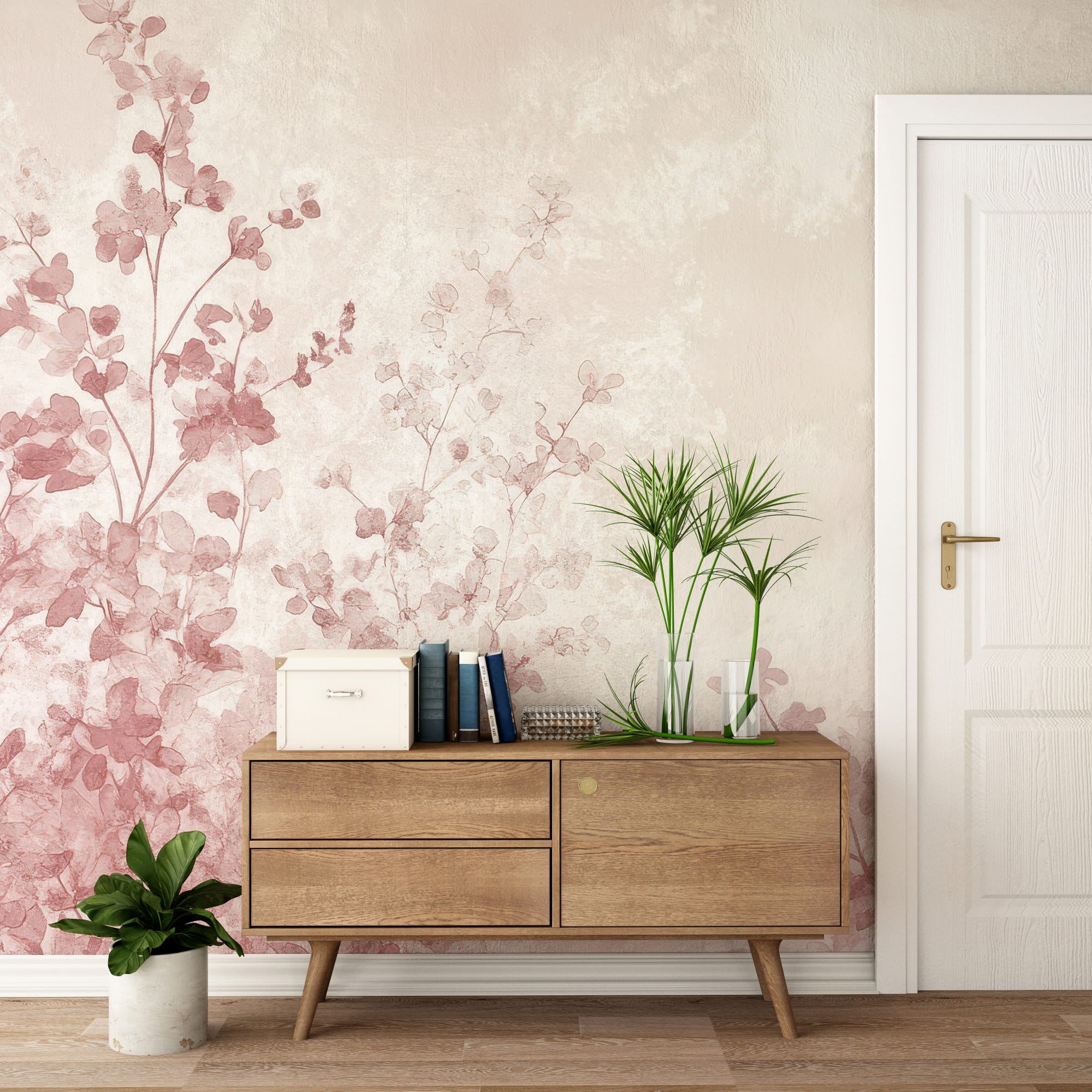 Przenieś się do świata delikatnej natury dzięki fototapecie „Pudrowe liście”. Ilustracyjna kompozycja przedstawia lekkie gałązki z drobnymi liśćmi w odcieniach pudrowego różu, osadzone na jasnym, miękko fakturowanym tle. Rozmyte krawędzie, subtelne przejścia tonalne i stonowana paleta barw tworzą spokojną, eteryczną atmosferę pełną lekkości i wizualnej ciszy.