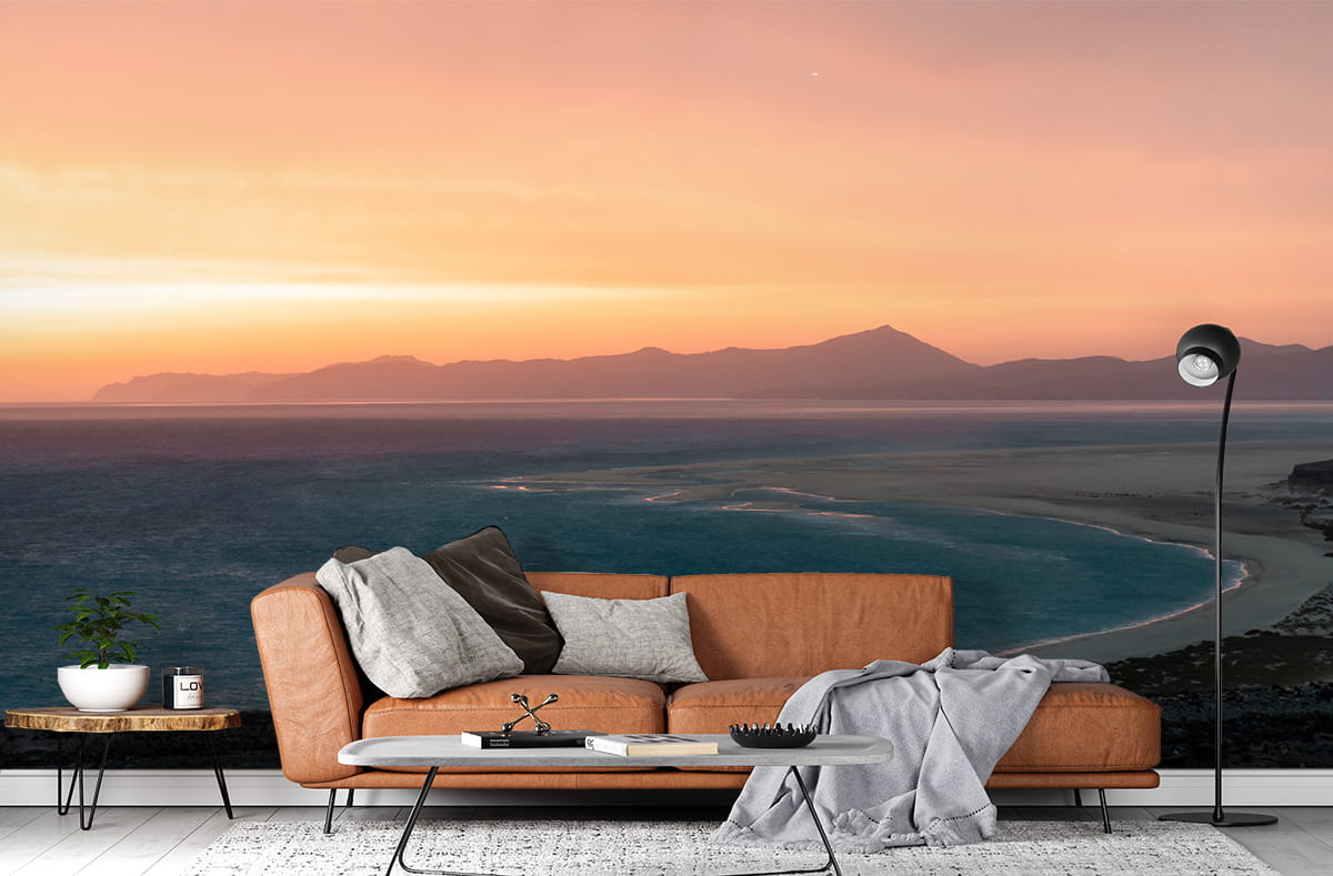 Wprowadź do swojego wnętrza atmosferę ciszy i odprężenia dzięki fototapecie „Spokojny horyzont o zachodzie”. Rozległy widok oceanu połączony z delikatnie zarysowanymi górami na horyzoncie tworzy minimalistyczną, a jednocześnie niezwykle nastrojową kompozycję. Ciepłe odcienie różu, brzoskwini i złota płynnie przechodzą w chłodne błękity wody, budując poczucie równowagi i przestrzeni.