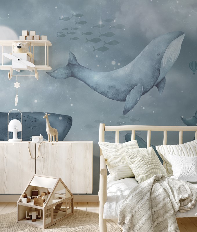 Fototapeta „Taniec Wielorybów” tworzy przyjazną, inspirującą przestrzeń w pokoju dziecka, zachęcając do marzeń i kreatywnej zabawy. Dzięki uniwersalnemu designowi pasuje zarówno do pokojów chłopców, jak i dziewczynek, a jedna ściana z motywem wielorybów potrafi całkowicie odmienić wystrój wnętrza.