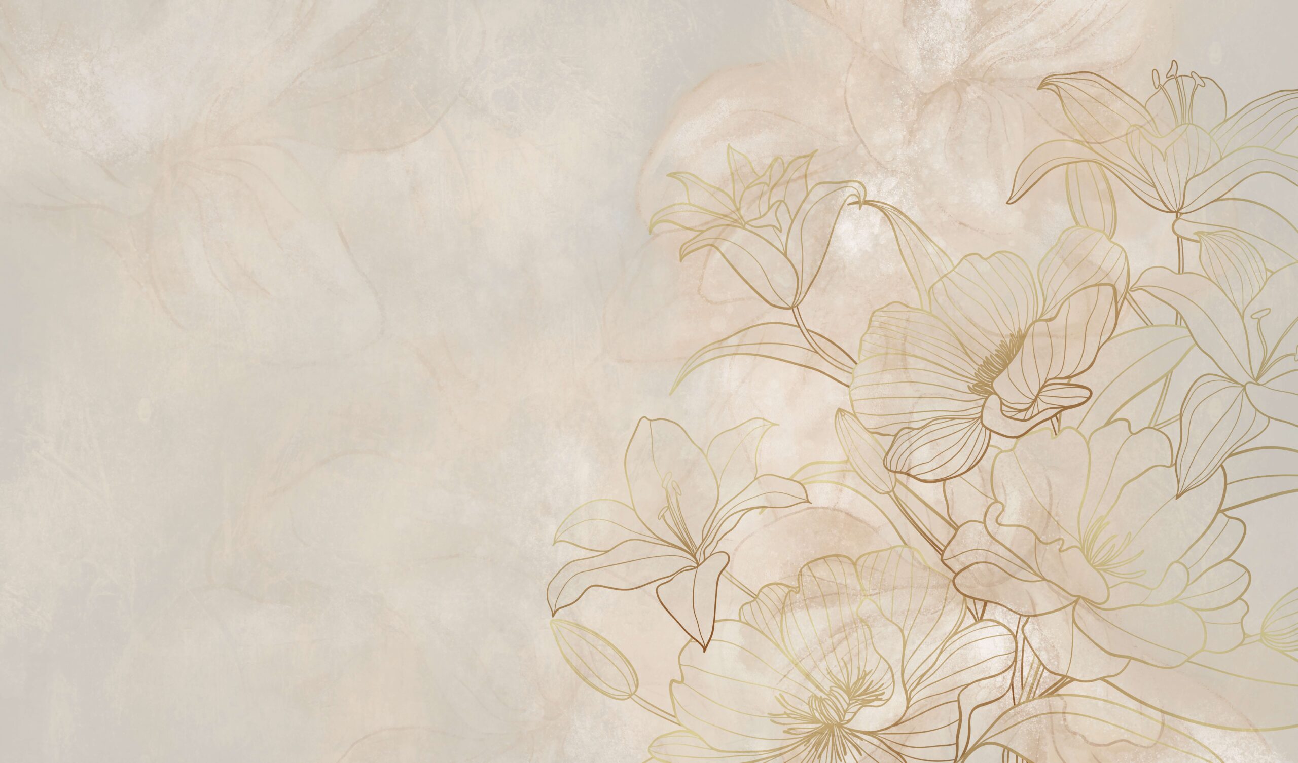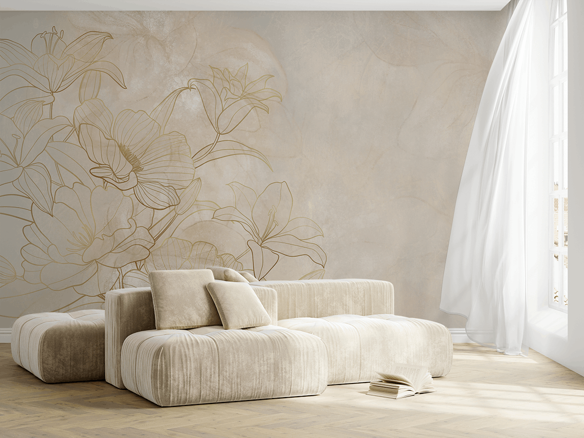 Fototapeta „Złota Botaniczna Delikatność” – subtelna elegancja, złote kontury i delikatne kwiaty w pastelowej, luksusowej kompozycji