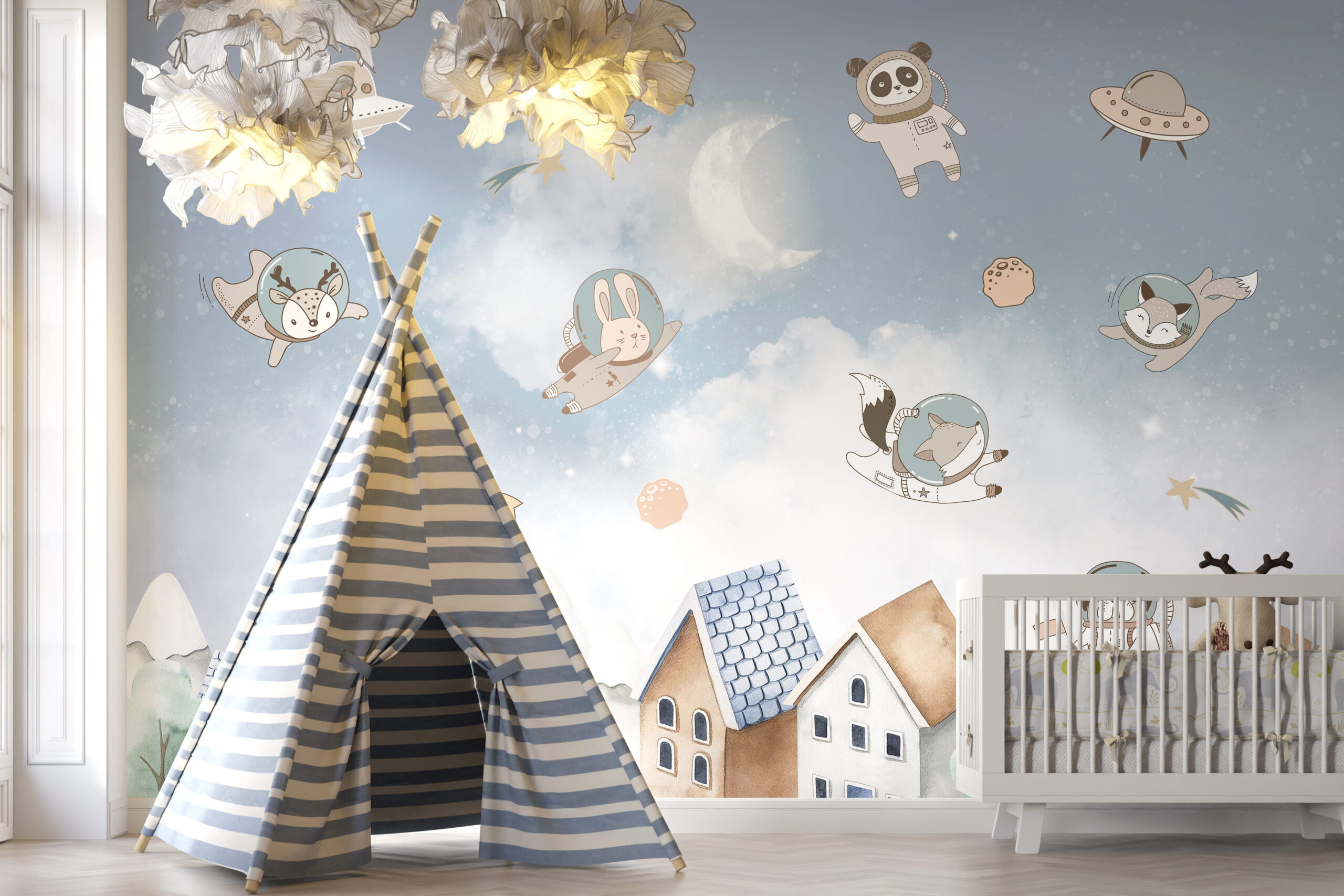 Fototapeta „Zwierzątka nad domkami” to nie tylko ozdoba ściany, ale także element budujący przytulną i bezpieczną przestrzeń dla dziecka. Motywy zwierzęce są ponadczasowe i uwielbiane przez najmłodszych, dlatego doskonale sprawdzą się jako baza do stworzenia wyjątkowego pokoju dziecięcego.
